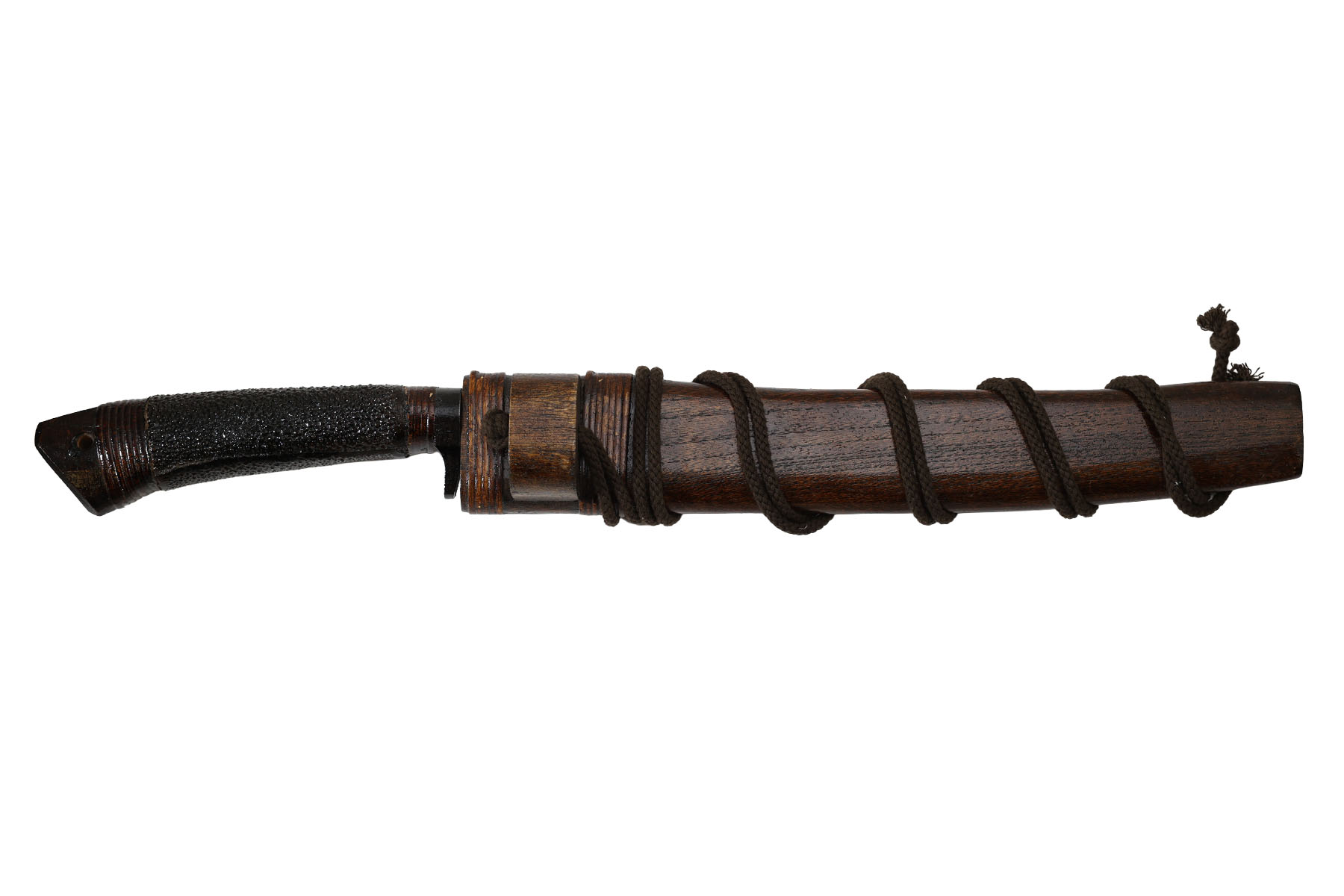 Le manche en chêne recouvert de galuchat (peau de raie) et en osier dispose d'une garde ainsi que d'un œillet.