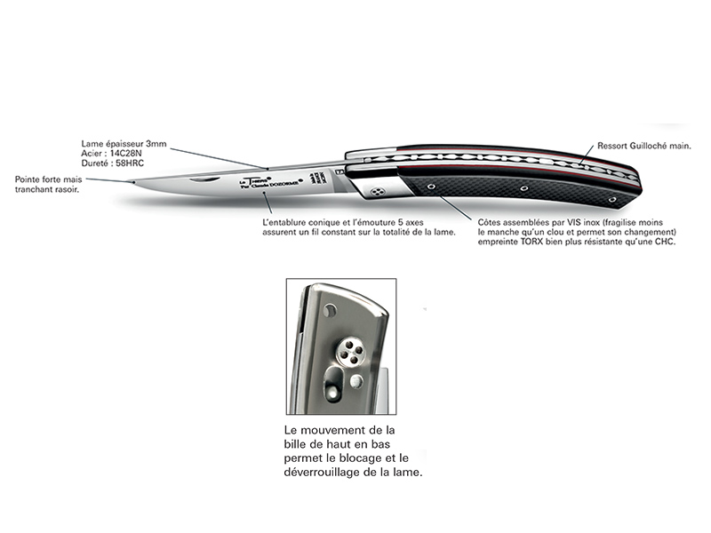 Le mouvement de la bille de haut en bas permet le blocage ou déblocage de la lame.