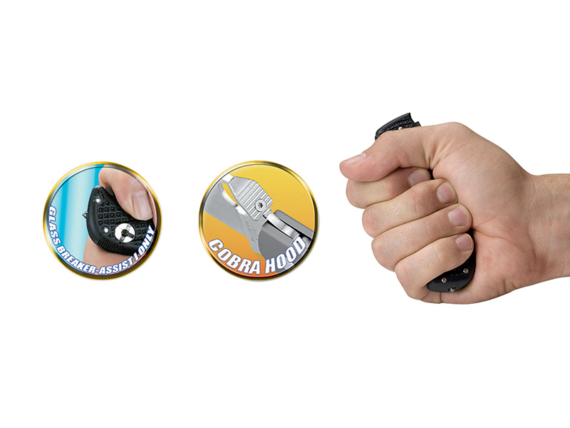 Avec clip et pic brise-vitre rétractable en bout.