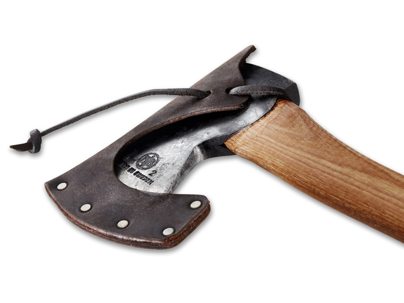 Hache Hultafors livrée en boîte avec un étui en cuir.